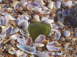 storm which provides big waves churning up the shells and glass lying at the bottom of the ocean.